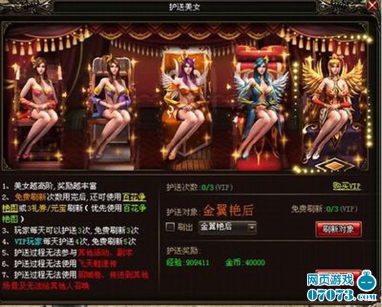 ¡¡¡¡ÔÚ2866¡¶ÁÒ»ðÕ½Éñ¡·ÃÀÅ®»¤Ë͵ÄÈÎÎñÖУ¬ÃÀÅ®¹²·Ö5¸öµµ´Î£¬¾ÍÏñÏÖÔÚÁ÷´«10µÈŮ֮·Ö£¬Ã¿¸öÄÐÈ˶¼Ï£ÍûÄÜÕÒµ½Ê®È«Ê®ÃÀµÄÃÀÅ®¡£Æ·ÖÊÔ½¸ßµÄµµ´ÎÔ½¸ß£¬Ñ¡ÔñÔ½¸ßµµ´ÎµÄÃÀÅ®£¬ÔÚ»¤Ëͳɹ¦ºó»ñµÃµÄ½±ÀøÒ²½«Ô½·á¸»£¬³ÈɫƷÖʵĽðÒíÑÞºóÉõÖÁÄܹ»¸øÓèÍæ¼Ò90WµÄ¾Ñ飬4WµÄ½ð±Ò¡£