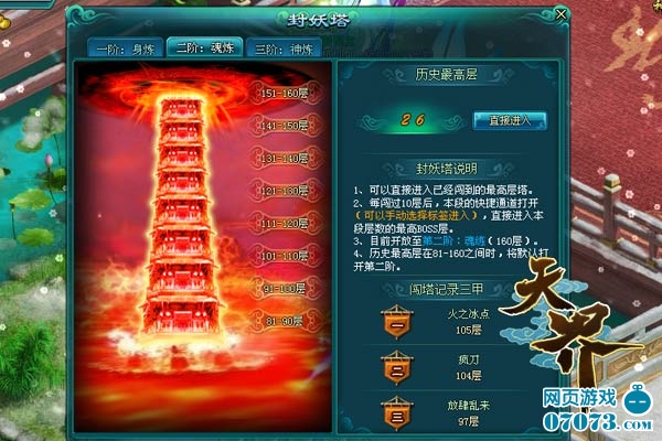 ¡¡¡¡¾¹ý·âÑýËþ“ÉíÁ¶”½×¶ÎµÄÌôÕ½£¬ÄãÊDz»ÊÇÒѾ³ÉΪÍòÀïÌôÒ»µÄºÃÊÖÁËÄØ?´Ë´Î£¬¡¶Ìì½ç¡··âÑýËþÕ𺳿ªÆô“»êÁ¶”ÌôÕ½£¬ÎªÍæ¼Ò´øÀ´Á˱äÉíÈý½ç¾«Ó¢µÄȫлúÓö¡£²»¹ý£¬»êÁ¶ÌôÕ½²»Í¬ÓÚÉíÁ¶¿¼Ñ飬¶ÔÍæ¼ÒµÄʵÁ¦Ë®Æ½ºÍÌôÕ½¼¼ÇÉÌá³öÁ˸ü¸ßµÄÒªÇó¡£ÏÂÃæ£¬¾ÍÈÃÎÒÃÇÏÈÐÐÁìÂÔÏÂÆäÖеÄÕ½·¨°É!