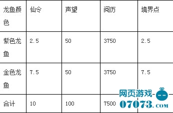 ¡¡¡¡Ã¿ÈÕµÃÁúÓãÁî10ö£¬¿ÉÒÔ½øÐлÁúÓã10´Î£¬Æ½¾ùÓÐ2.5´Î×ÏÉ«ÁúÓãºÍ2.5´Î½ðÁúÓ㣬һ½×½ðÁúÓã½±ÀøÎªÏÉÁî3¸ö¡¢ÉùÍû20¡¢ÔÄÀú1500£¬¾³½çµã3£¬×ÏÉ«ÁúÓãÄܵÃÏÉÁî1¸ö¡¢ÉùÍû20¡¢ÔÄÀú1500£¬¾³½çµã1.¡£°´ÕÕÆÕÍ¨Íæ¼ÒÿÈÕ2.5´Î×ÏÉ«ÁúÓãºÍ2.5´Î½ðÁúÓãµÄ¸ÅÂʼÆËãÿÈÕÊÕÒæÈçÏÂ
