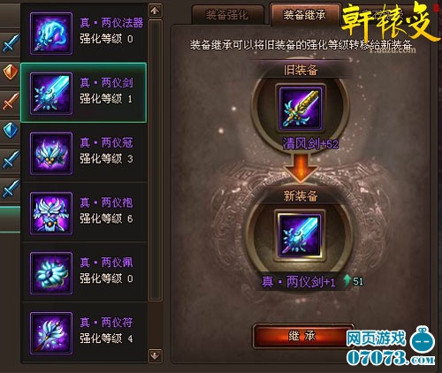 ¡¡¡¡Í¬ÀàÐ͵Ä×°±¸¿ÉÒÔ½«Ç¿»¯µÄµÈ¼¶×ªÒÆÖÁÁíÒ»¼þ×°±¸ÉÏ£¬Èç´Ë¾Í¿ÉÒÔ½ÚÊ¡ÁË´óÁ¿ÒøÁ½¡£ÐèҪעÒâµÄÊÇ£¬¾É×°±¸ÓëÐÂ×°±¸µÄÆ·Öʲ»Ò»Ñùʱ£¬ÐÂ×°±¸Ëù¼Ì³ÐµÄÇ¿»¯µÈ¼¶½«·¢Éú±ä»¯¡£