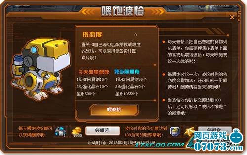 ¡¡¡¡´Ó°¢¶û·¨ÄǵÃÖª£¬ÔÚÒ»Ò¹Ö®¼äÔÂÇòѵÁ·³¡µÄ¸ÖÌúÈ«²¿ÏûʧÁË¡£¾µ÷²éµÃÖªÊÇÒ»Ö»ÃûΪ²¨Ç¡µÄÓîÖæ¹ÖÊÞ¡£Ð¡Ðý·çÃÇÌôÕ½ÔÂÇò»ùµØ¸±±¾ºó£¬¾Í»á·¢ÏÖ²¨Ç¡µÄÐÐ×ÙÁË£¬ÄǾÍÊÇÔÚ×Ü˾Áî¿Æ¶÷ÄÇÀСÐý·çÃÇÐèҪι±¥²¨Ç¡£¬ÐèÒªÒ»¶¨µÄµÀ¾ß×÷Ϊ²¨Ç¡µÄʳÎÿһ´Îι±¥²¨Ç¡ºó½«µÃµ½10µãÒÀÁµ¶È£¬Í¬Ê±µ±´ïµ½²¨Ç¡µÄÒÀÁµ¶ÈΪ100ʱ£¬¾Í¿ÉÒÔÇáËÉÁìÈ¡Ôö¼Ó´óÁ¿MPµÄÏ¡ÉÙ»ÕÕ“²¨Ç¡²»¶öÀ²”ÒÔ¼°±ÈÌØÖ®ÐǵÀ¾ß¡£