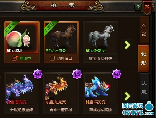 ¡¡¡¡µ±»ñµÃÁË×ã¹»µÄÌÒ±¦¾Ñéºó£¬¿ÉÒÔÊÖ¶¯µã»÷Éý¼¶¡£ÌÒ±¦Éýµ½2¼¶ºó£¬¾Í»á¿ª·Å»¯Ðι¦ÄÜ£¬±ä»¯³ÉÍþ·çÁÝÁݵÄ×øÆï¹©Íæ¼Ò³ËÆï¡£ÌÒ±¦µÈ¼¶Ô½¸ß£¬±ä»¯µÄ×øÆï¾ÍÔ½ÎªË§ÆøÀ·ç¡£Íê³ÉÌØÊâʼþ£¬»¹ÄÜʹÌÒ±¦±äΪ°ÔÆøÍâйµÄ×øÆï£¬Èç²ÔÁú¡¢ò°ÁúµÈµÈ¡£Õâ¿ÉÊÇÍæ¼ÒÔÚ»ðÍæ¡¶Éñ½«Èý¹ú¡·ÖÐˣ˧°ç¿á±Ø²»¿ÉÉٵġ£