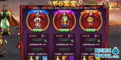¡¡¡¡ÎªÓ½Óдº¼Ñ½Úµ½À´£¬4311¡¶½Ö»úÈý¹ú¡·Îª¸÷Î»Íæ¼Ò×¼±¸Á˷ḻµÄ½ÚÈջ£¬Ð´º¿ñ»¶£¬¶àÖØºÃÀñ£¬È«ÃñͬÇì!1ÔÂ29ÈÕÖÁ2ÔÂ20ÈÕдºÆÚ¼ä£¬4311¡¶½Ö»úÈý¹ú¡·Íæ¼Ò¿ÉÒÔÔÚ¼ªÀûÍá¢Õвƹꡢ¾Û±¦ÁúÈýÖÖ¼ªÏ鱦±¦ÖÐÑ¡ÔñÁìÑøÆäÖÐÒ»ÖÖ£¬ÁìÑø³É¹¦Ö®ºó±¦±¦¼´¿ªÊ¼³É³¤¡£´ÓÁìÑøµÚ¶þÈÕ¿ªÊ¼£¬Ã¿ÈÕ±¦±¦½«×Ô¶¯³É³¤10%£¬Íæ¼Ò¿ÉÒÔͨ¹ýÔª±¦Î¹Ê³±¦±¦À´¼ÓËÙÆä³É³¤£¬Ôª±¦Î¹Ê³µÄͬʱ»¹¿ÉÒԵõ½Ò»¸ö¶ÔÓ¦ÑÕÉ«µÄ¸£´ü!