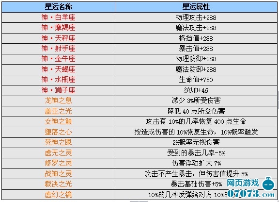¡¡¡¡ÉñÇúÖеÄÐÇÔËÖ÷Òª·ÖΪÒÔϼ¸Àà¡£¹Ì¶¨ÖµÔö¼ÓµÄÐÇÔË(ÒÔϾùÒÔ×î¸ßÊôÐÔµÄÐÇÔËΪÀý)£ºÉñ·°×Ñò×ù£¬Éñ·Ä¦ôÉ×ù£¬Éñ·Ìì³Ó×ù£¬Éñ·ÉäÊÖ×ù£¬Éñ·½ðÅ£×ù£¬Éñ·ÌìЫ×ù£¬Éñ·Ë®Æ¿×ù£¬Éñ·Ê¨×Ó×ù£¬¸ÇÑÇÖ®¹â£¬Å®ÉñÖ®´¥¡£°Ù·Ö±ÈÔö¼ÓµÄÐÇÔË£ºÁúÉñ֮Ϣ£¬¶éÂäÖ®ÐÄ£¬ÐÞÂÞÖ®Á飬սÉñÖ®Á飬²Ã¾öÖ®¹â£¬Ðé»ÃÖ®¾³¡£¸ÅÂÊÀàRPÐÇÔË£ºÅ®ÉñÖ®´¥£¬¶éÂäÖ®ÐÄ£¬ËÀÉñÖ®ÑÛ£¬ÐÞÂÞÖ®Á飬Ðé»ÃÖ®¾³¡£¶øÃ¿¼¶ÐÇÔ˾ßÊôÐÔÈçϱíËùʾ¡£