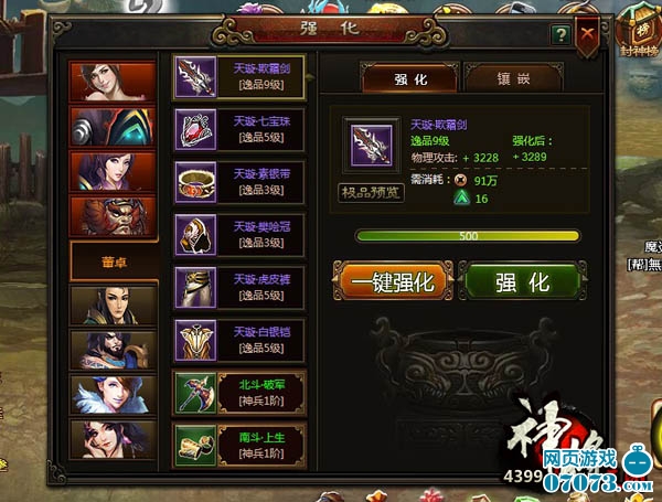 ¡¡¡¡“×°±¸Ç¿»¯”×÷ΪսÁ¦ÌáÉýµÄÓÐÒ»´ó;¾¶£¬ÔÚ¾ø´ó²¿·ÖÓÎÏ·Öж¼°çÑÝ×Å×î¿ÓÇ®µÄ½ÇÉ«£¬µ«ÔÚÉñ½«Èý¹úÖУ¬ÕâÒ»Çз³ÄÕÈ´¶¼±»Ïû³ýÁË¡£ÒòΪÉñ½«Èý¹úÖеÄ×°±¸Ç¿»¯ÊÇûÓд«Í³µÄ¼¸ÂÊÏÞÖÆµÄ£¬×°±¸Ç¿»¯100%³É¹¦£¬Í¬Ê±£¬Íæ¼ÒÖ»Ðèͨ¹ýÍê³ÉÖ÷ÏßÈÎÎñ¡¢ÈÕ³£ÈÎÎñ¡¢¾«Ó¢BOSS¼¯Æë²ÄÁÏ£¬¼´ÄÜÇ¿»¯×°±¸£¬´Ó´Ë£¬Éñ±øÀûÆ÷²»ÔÙÊÇRMBרÊô¡£