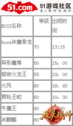 ¡¡¡¡¡¶51ÁÒ»ðÕ½Éñ¡·ÊÀ½çbossË¢ÐÂʱ¼ä£º