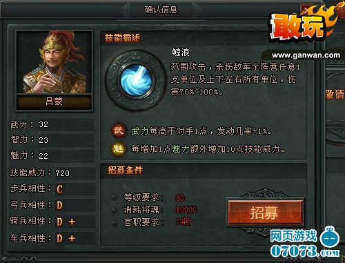 ¡¡¡¡¼¼ÄÜÍþÁ¦£º720£¬²½±øÏàÐÔ£ºC£¬¹±øÏàÐÔ£ºD£¬Æï±øÏàÐÔ£ºD+£¬³µ±øÏàÐÔ:D+