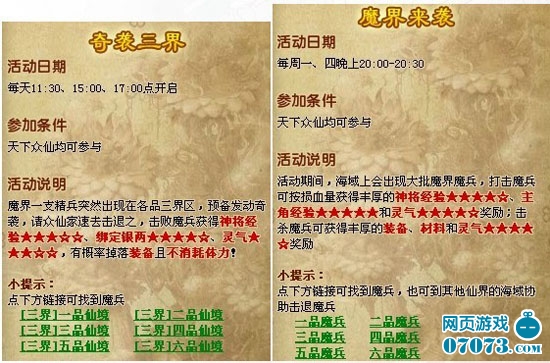 ¡¡¡¡ÆæÏ®3½çºÍħ½çÀ´Ï®µÄ»î¶¯£¬¶¼ÊôÓÚ“¹ÖÎïÀ´´òÍæ¼Ò”µÄÀàÐÍ¡£