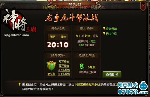 ¡¡¡¡ÏëÒªÓµÓÐÈç´ËÖ®¶àµÄ½±Æ·¶¼ÐèÒªÒÀ¿¿°ïÅɳÉÔ±µÄʵÁ¦£¬ÔÚÒ»¸ö¸ö°ïÅɵÄÕ½¶·ÖÐÍÑÓ±¶ø³ö¡£ÐÖµÜÍæÉñ½«Èý¹úÿÖܶ¼½«16¸ö°ïÅɲμӰï»áÕ½£¬ÔÚ¾¹ýÒ»³¡³¡µÄØËɱµ½×îºóµÄ¾öÈü²ÅÄܾö³ö×îºóµÄ¹Ú¾ü£¬Ã¿ÌìØËɱ¶¼Ö»ÓÐ20·ÖÖÓ£¬µ±20·ÖÖÓ´ïµ½µÄʱºò£¬ÏµÍ³Ã¿¸ôÒ»¶Îʱ¼ä¶¼»áÅäÖÃһЩÊÌÎÀ£¬Ö»ÒªÄܴݻٶԷ½»ùµØÄÚµÄÕ½Æì£¬¼´¿ÉÐû¸æÕ÷·þ³É¹¦¡£