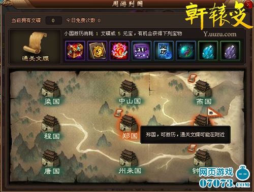 ¡¡¡¡ÔÚ¡¶ÐùÔ¯±ä¡·ÖÜÓÎÁйúÍæ·¨ÖУ¬Ã¿Ìì¶¼ÓÐ5´ÎÃâ·ÑÓÎÀúµÄ´ÎÊý£¬ÏÈÒªÔÚÁº¡¢Ñà¡¢³Ì¡¢Ö£¡¢ëø¡¢ÌÆ¡¢ÖÝÀ´¡¢ÖÓÀë¡¢ÖÐɽÕâ¾Å¸öС¹úÖ®¼äÓÎÀú£¬Äõ½Í¨¹ØÎÄ뺺󷽿ɽøÈë´ó¹ú£¬¶øÔÚÕâЩС¹úÓÎÀúʱ¿ÉÒÔ»ñµÃ¾Ñé¡¢ÔÄÀú¡¢±¦Ê¯¡¢ÐéØÔµÈ½±Àø¡£ÈçºÎÖªÏþͨ¹ØÎÄ뺲ØÔÚÄĸö¹ú¼ÒÄØ?ÔÚÈÎÒâÓÎÀúÁËÒ»¸ö¹ú¼Òºó£¬Èç¹ûͨ¹ØÎÄëºÔÚÕâ¸ö¹ú¼Ò¸½½üµÄ»°£¬Ôò»áÓÐÒ»¸öÐÑÄ¿µÄͼ±êÌáʾ£¬ÈôÊÇûÓÐÕâ¸öÎÄ뺱êÖ¾£¬ÄǾÍÑ¡ÔñÀë´Ë´¦½ÏÔ¶µÄ¹ú¼Ò½øÐÐÓÎÀú°É¡£ÔÚÄõ½Í¨¹ØÎÄ뺺󣬾ͿÉÒÔÔÚÇØ¡¢Â³¡¢ËΡ¢Êñ¡¢ÎâÕâÎå¸ö´ó¹úÖ®¼äÓÎÀú£¬¶øÒ»·ÝÉñÃØµÄ±¦²Ø¾Í²ØÄäÓÚÕâÎå¸ö¹ú¼ÒÖ®ÖÐ!±¦ÏäÀï¿É»ñµÃС¹úͨ¹ØÊ±ËùÓеĽ±Àø£¬¸üÓÐ3¼¶Õä¹ó±¦Ê¯µÈ×ÅÄãÈ¥·¢ÏÖ!
