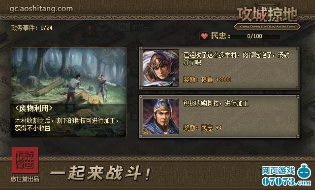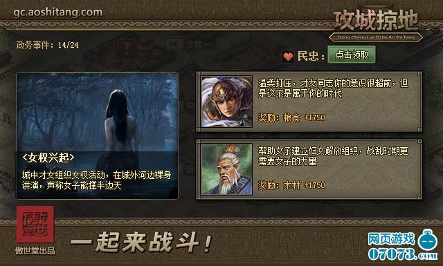 ¡¡¡¡´¦ÀíÕþÎñʼþʱÓÐʱ»¹»á³öÏÖ´¦ÀíÒÔºóµÄ½±ÀøÊÇÃñÖҵģ¬Ã¿´Î»ñÈ¡µÄÃñÖÒ½øÐÐÀÛ¼Ó£¬´ïµ½100ÒԺ󣬻á³öÏÖÌáʾ“µã»÷ÁìÈ¡”£¬µã»÷ÒÔºó»á»ñÈ¡·áºñµÄ×ÊÔ´£¬Òò¶øÍæ¼Ò²»ÒªºöÊÓÁËÃñÖÒ¡£