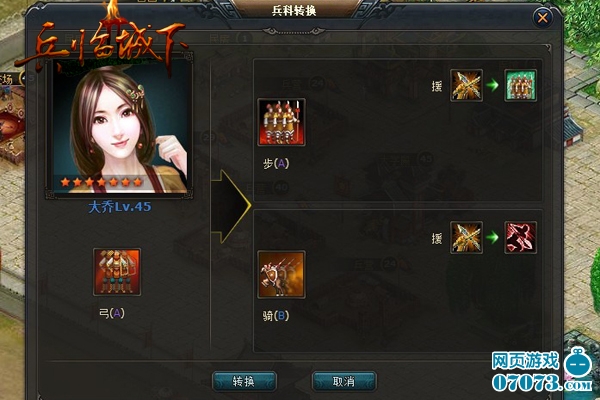 ¡¡¡¡ÔÚµØÅÌÍø¡¶±øÁÙ³ÇÏÂ2¡·ÖУ¬±øÖÖÒ»¹²·ÖΪÆï±ø¡¢²½±øºÍ¹±øÈýÖÖ¡£±ø¿ÆµÈ¼¶´ÓµÍµ½¸ßÒÀ´ÎΪC¡¢B¡¢A¡¢SËÄÖÖ¡£Ã¿Î»Î佫Ëù¶ÔÓ¦µÄ±ø¿Æ¸÷²»Ïàͬ¡£µ«ÊÇÕâЩ±ø¿ÆÖ®¼ä¿ÉÒÔ»¥Ïàת»»£¬±ÈÈçÓÐЩÎ佫µÄ¹ÎªB£¬ÆïȴΪS£¬Íæ¼Ò¿É½«Æä´Ó¹×ª»¯ÎªÆï¡£±ø¿ÆµÄת»¯£¬ÓÐʱºò»á´øÀ´Î佫¼¼Äܵı䶯¡£