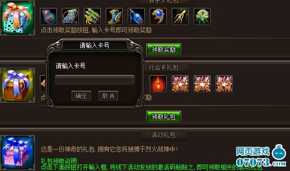 ¡¡¡¡µÚÒ»¸öÊǸ÷ÖÖÐÂÊÖÀñ°ü¡£ºÍÆäËûÓÎÏ·²»Ì«Ò»ÑùµÄÊÇ£¬Ò»°ãÀ´Ëµ¶¼Ö»ÓÐÒ»¸ö»òÕßÁ½¸öÐÂÊÖ¿¨¡£ÔÚ»¶ÀÖÔ°¡¶½Ö»úÈý¹ú¡·ÀïÃæ£¬Äã¿ÉÒÔÁìµ½ÁùÖÖÐÂÊÖÀñ°ü¡£µÚÒ»¸öµ±È»ÊÇÐÂÊÖ¿¨ÁË;µÚ¶þ¸ö£¬Ê׳äÈÎÒâ½ð¶î£¬Ò»¿éǮҲÐУ¬¾Í¿ÉÒÔÁìµ½¼ÛÖµ1888µÄÀñ°ü;×øÆïÀñ°ü;Ó¢ÐÛÀñ°ü;»êʯÀñ°ü;×îºóÒ»¸ö£¬ÌáȡԪ±¦Ëͼ«Æ·µÀ¾ß¡£ÕâЩÀñ°üµÄÁìÈ¡¶¼ÊÇÓÐʱ¼äÏÞÖÆµÄ£¬¾ßÌ廹µÃÍæ¼Ò×Ô¼ºÈ¥¹Ø×¢¹ÙÍø¡£
