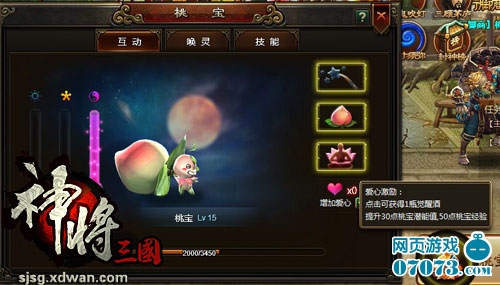 ¡¡¡¡ÐÖµÜÍæÉñ½«Èý¹úÌÒ±¦ÊÇÔÚͨ¹ýÁËÌÒ»¨Áֹؿ¨²ÅÄÜ¿ªÆôµÄϵͳ£¬×î³õÔÚÌÒ»¨ÁÖÏàÓöÌÒ±¦£¬¾Í±»ËüÂôÃȵıíÇéÉîÉî¸øÎüÒýÁË£¬¿ÉÊÇûÓÐÏëµ½×îºóËüÄܳÉΪ»ï°éÖ®Ò»¡£ÌÒ±¦ÏµÍ³¿ªÆô¿ÉÒÔµã»÷½çÃæÓÒϽǵÄÌÒ±¦Í¼±ê»òÕßµã»÷¼üÅ̵Ŀì½Ý¼ü“H”°´¼ü£¬¾ÍÄÜ¿´µ½ÃÈÃȵÄСÌÒ±¦ÁË£¬»¹¿ÉÒÔÓëÌÒ±¦»¥¶¯µÃµ½²»Í¬µÄÊÕÒæ£¬ÓÐʱºò»¥¶¯ÂúÖµÖ®ºóÓÐ×ÅÒ»¶¨µÄ¼¸Âʵõ½Ë«±¶µÄÊÕ񾁦¡£