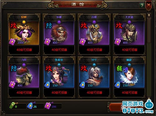 ¡¡¡¡Ê×ÏÈ̸̸Î佫¡£µ½´ïÏàÓ¦µÄµÈ¼¶ºó£¬Íæ¼Ò¿ÉÒÔÔÚ“¼ø±¦¸ó”Öгéȡһ¶¨ÊýÁ¿µÄ±ÌË®«i¡¢Çà²Ô«i¡¢×ÏÚ¤«i£¬·Ö±ðÓÃÓÚ»»È¡¾Æ¹ÝÖеÄÂ̽«¡¢À¶½«¡¢×Ͻ«¡£