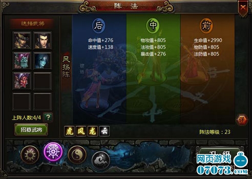 ¡¡¡¡µ±¿àÐÄÕÐļµÄÎ佫¹éÓÚÄã÷âÏÂÖ®ºó£¬ÈçºÎ°²ÅÅËûÃǵÄÈ¥´¦±ãÊÇÊ×ÒªÎÊÌâ¡£7789¡¶Éñ½«Èý¹ú¡·µÄÕó·¨ÏµÍ³ÖÐÎªÍæ¼ÒÌṩÁËËÄÖÖÕóÐÍ£¬·Ö±ðÊÇ1-3-1µÄ»¢ÒíÕó£¬3-1-1µÄ·çÑïÕó£¬1-1-3µÄÁú·ÉÕó£¬2-2-1ÔÆ´¹Õó¡£ÔÚ²»Í¬µÄÕóÐÍÖУ¬Ç°¾ü¡¢Öоü¡¢ºó¾üµÄ¼Ó³É¸÷²»Ïàͬ£¬¿ÉÒÔͨ¹ýÔÄÀúÖµÌáÉý¡£