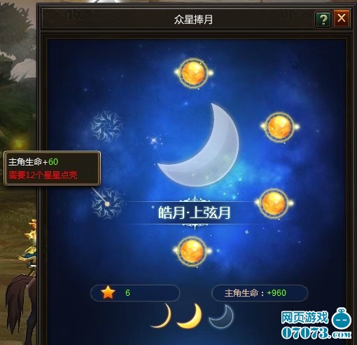 ¡¡¡¡ÖÚÐÇÅõÔµÄÒ³ÃæÉÏÓÐÁù¸öÓÃÓÚµãÁÁµÄÎÀÐÇ£¬Ã¿ÏûºÄÒ»¶¨ÊýÁ¿ÐÇÐǾͿÉÒÔµãÁÁÒ»´Î£¬»ñµÃÏàÓ¦µÄÉúÃüÖµ¼Ó³É¡£µ±µãÂúµ±Ç°ÔÂÏàÖеÄËùÓÐÎÀÐÇʱ£¬½«»á¿ªÆôеÄÔÂÏ࣬ͬʱÌáÉý½ÏΪ¶àµãµÄÊôÐԼӳɡ£