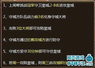 ¡¡¡¡µ±ÄãËùÊôµÄÐÖµÜÍæÉñ½«Èý¹ú°ïÅÉ»ñµÃÒ»´Î»Ê³Ç·é»ðÕù¶áÕ½ÒÛ×ʸñºó£¬Äã¿ÉÒÔÔÚÖÜÒ»¡¢ÈýÍíÉÏ8µã10·Ö½øÈë»î¶¯¡£Ö»ÒªÔÚÉÏÖܰïÅÉÕ½Öжá¹ÚµÄ°ïÅɾͿÉÒÔ»ñµÃÕòÊØ»Ê³Ç£¬½ÓÊܸ÷´ó°ïÅɵÄÌôÕ½£¬ÔÚ°ïÅÉÕ½ÅÅÃû2-8½«³ÉΪ¹¥³ÇµÄ°ïÅÉ£¬ÐèÒªÔڻʳǷé»ð»î¶¯Öй¥ÆÆ³Ç³Ø¡£