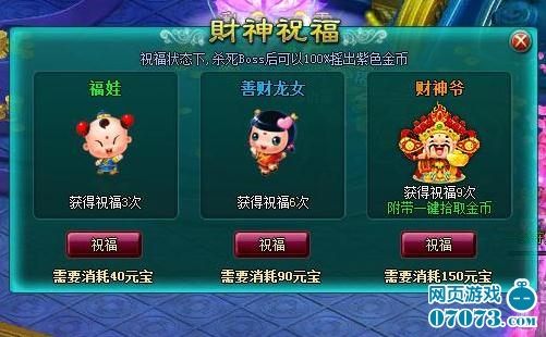 ¡¡¡¡Èç¹ûÍæ¼ÒÔÚ½øÈ븱±¾Ê±£¬»¨·ÑÒ»¶¨µÄÔª±¦Ñ¡ÔñÁ˲ÆÉñ×£¸£µÄ»°£¬ÄÇôҡ³öÀ´µÄ¾Í°Ù·Ö°ÙÊÇ×î´óºÅµÄ×ÏÉ«½ð±Ò¡£×î¸ß¼¶µÄ²ÆÉñ×£¸££¬»¹ÄÜÊ¹Íæ¼ÒÓµÓÐ×Ô¶¯Ê°È¡¹¦ÄÜ£¬¿´×ź£Á¿µÄ½ð±Ò·É±¼µ½×Ô¼ºÉíÉÏ£¬ÊDz»ÊǺÜË¬ÄØ?ÓÐÁ˲ÆÉñ±£ÓÓ£¬Ò»´Î׬¸öǧ°Ë°ÙÍò²»ÊÇÎÊÌâŶ¡£