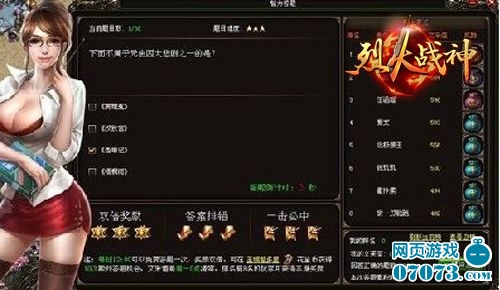 副本、PK、打BOSS,持续性的火爆战斗也会让大家有一些疲劳之感,精神的高度集中也会让大家身心疲惫。大中午的,也该适当放放松,休息下手指和手腕,如果再来点脑力小测验那就更完美了。86you《烈火战神》智力答题,让头脑在转一会儿!