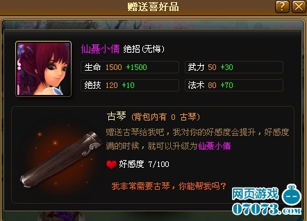 ¡¡¡¡ÖÚËùÖÜÖª£¬°ÙÁ¶ºøÊÇ»ï°éÐÞÏɵı¦µØ£¬µ±Íæ¼ÒÕе½ÁËÄôСٻºó£¬ÔÚ°ÙÁ¶ºøÖеã»÷СٻµÄÍ·Ïñ£¬¾ÍÄÜ¿´µ½Ð¡Ù»ÉýÏÉÐèÒªµÄ±¦Îï¡£ÓÉÓÚСٻÓëÄþ²É³¼ÒòΪ¹ÅÇÙ¶ø½áʶ£¬Òò´Ë¹ÅÇÙ³ÉÁËËý×îϲ°®µÄ¶«Î÷£¬Èç¹ûÍæ¼ÒË͹ÅÇÙ¸øËý£¬Ëý¾Í»áºÜ¸ßÐË£¬Ö»ÒªÂú×ãËýÓëÍæ¼Ò100µãµÄºÃ¸Ð£¬Ð¡Ù»¾ÍÄÜÉýÏÉÁË¡£