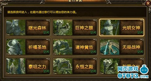 ¡¡¡¡ÐÞÐÐÉñµîÖÐÈ«Ì쿪Æô£¬Ã»ÓÐÈκÎÏÞÖÆ£¬Íæ¼Ò¿ÉÒÔÔÚÈκÎʱ¼ä½øÈ룬µ±È»£¬Ç°ÌáÊÇÍæ¼ÒµÄÌåÁ¦Ã»ÓÐÂúÖµ£¬²»¹ýÌåÁ¦ÂúÖµµÄÇé¿öϽøÈëÉñµî£¬ÊDz»ÄÜ¿ªÊ¼ÐÞÐеġ£ÉñµîÖй²ÓÐ9¸ö·¿¼ä£¬Ã¿¸ö·¿¼äµÄ²¼¾Ö¶¼Ò»Ñù£¬Íæ¼ÒÑ¡ÔñÈÎÒâ·¿¼ä½øÈ룬¶¼¿ÉÒÔ»ñµÃÐÄÁéÉϵĽâ·Å¡£Ã¿Ìì×î¶àÖ»ÓÐ2¸öСʱÄÜ»ñµÃÌåÁ¦ÉϵĻظ´£¬Ã¿2·ÖÖÓ»ñµÃÒ»µãÌåÁ¦»Ø¸´£¬×î¶à»Ø¸´60µãÌåÁ¦£¬ÄãÒ²¿ÉÒԷִνøÈëÉñµîÐÞÐУ¬Ê±¼äÊÇ×Ô¶¯Àۼơ£