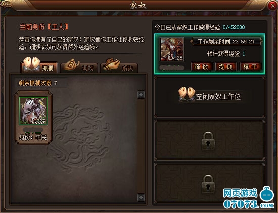 ¡¡¡¡ÔÚ¼ÒÅ«ÐÄÖÐÖ÷ÈËÊÇÓÃÀ´Ìֺõġ£ÌÖºÃÖ÷ÈË¿ÉÒÔ»ñµÃ¶îÍâ¾Ñ飬ºÎÀÖ¶ø²»ÎªÄØ¡£ËäÈ»µ±¼ÒÅ«ÓÐÖ÷ÈËÅã×ÅÍæ£¬µ«ÊDZϾ¹ÊÕÒæÉõ΢¡£³ÉΪ¼ÒÅ«µÄÍæ¼Ò¿ÉÒÔ·´¿¹Ö÷ÈË£¬Ö»ÒªÄÜսʤÖ÷ÈË£¬¾ÍÄָܻ´Æ½ÃñÉí·Ý¡£Èç¹ûÄú¾õµÃÎÞÁ¦·´¿¹£¬Ò²¿ÉÏò¼Ò×å³ÉÔ±¡¢ºÃÓÑ·¢³öÇó¾ÈÐźš£Ö»ÒªËûÃÇÄÜսʤÄúµÄÖ÷ÈË£¬ÄúÒ²¿É»Ö¸´×ÔÓÉÉí!