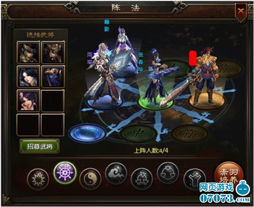 《神将三国》中的阵法共有七种,随着赤羽等级的提升,会逐渐开放更多的阵法给玩家使用,更高阶的阵法可以使队伍的战力变得更高。