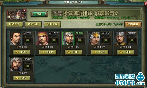 ¡¡¡¡Èç¹ûÄãÇåÏÐÏÂÀ´£¬Ò»¶¨Òª¶àµ½¿Íջתһת£¬¿ÍÕ»ÀïÈý½Ì¾ÅÁ÷Ö®±²ºÜ¶à£¬²»¹ýż¶ûÒ²»áÓöµ½Ò»Ð©¸øÁ¦µÄÃû½«£¬ËäÈ»´ó²¿·Öʱ¼äÓöµ½µÄ¶¼ÊÇÆÕͨÈË£¬µÈµÄ²»ÄÍ·³£¬¿ÉÒÔµã»÷Á¢¼´Ë¢Ð£¬Ëµ²»¶¨ÏÂÒ»¸ö¾ÍÊǸøÁ¦µÄÃû½«¡£½«ÁìµÄDZÁ¦¾Í´ú±í×ÅËûµÄÐǼ¶£¬Ô½ÊǸ߼¶µÄÃû½«ÆäDZÁ¦Ô½ÊǸøÁ¦£¬Ò²Ô½ÖµµÃÅàÑø¡£