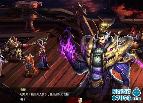 火玩《神将三国》中,曹操算是妖化了,全身紫色铠甲,透漏出恐怖的气息,手上燃起的紫焰仿佛鬼魅,眉宇间的锋芒,当真无愧于奸雄二字。