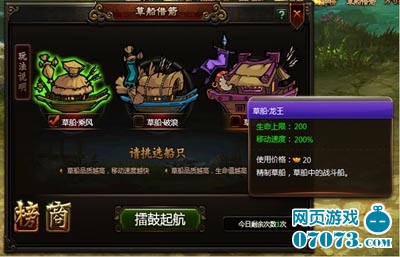 ¡¡¡¡Íæ¼Ò½øÈë½è¼ýÍæ·¨ºó£¬»á½øÈëÏÂÒ»¸ö»·½Ú--Ìôѡս´¬¡£¹²¼ÆÂÌ¡¢À¶¡¢×ÏÈýÖÖÆ·ÖʵĴ¬¿ÉÒÔÑ¡Ôñ(²Ý´¬Æ·ÖÊÔ½¸ß£¬´¬µÄÉúÃüÖµºÍËٶȾͻáÔ½¿ì)¡£²Ý´¬»¹ÓÐËÙ¶ÈÇø·Ö£¬ÄѵÀ²Ý´¬½è¼ý¾ÍÊÇÆäËûÓÎÏ·ÀïµÄѺïÚÍæ·¨?С±àÔÚÕâ¸æËß´ó¼Ò£¬ÕâÍæ·¨±ÈѺïÚ¸üºÃÍæ!Íæ¼ÒÑ¡ÔñºÃ´¬Ö»ºó¾Í¿ÉÒÔÀÞ¹ÄÆðº½£¬Õ¹¿ª¶á±¦Ö®ÂÃÁË¡£
