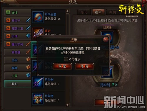 ¡¡¡¡ÔÚ¡¶ÐùÔ¯±ä¡·×°±¸´«³ÐϵͳÖУ¬Íæ¼Ò¿ÉÒ԰ѵͼ¶×°±¸ÒÑÇ¿»¯µÄÇ¿»¯µÈ¼¶×ªÒÆÖÁÐÂ×°±¸ÉÏ¡£µ±È»£¬´«³ÐϵͳҲÓÐÒ»¶¨µÄ¹æÔò£¬±ÈÈç¸ßÆ·ÖʵÄ×°±¸²»ÄܸøµÍÆ·ÖʵÄ×°±¸´«³Ð£¬²»Í¬ÀàµÄ×°±¸²»ÄÜ´«³ÐµÈ¡£