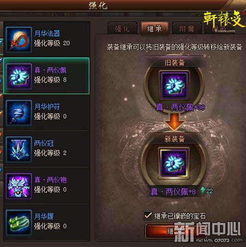 ¡¡¡¡¡¶ÐùÔ¯±ä¡·µÄ×°±¸´«³Ðϵͳ²¢²»Êǽö½ö´«³Ð×°±¸ÉϵÄÇ¿»¯µÈ¼¶£¬Á¬´øµÍ¼¶×°±¸µÄ±¦Ê¯Ò²¿ÉÒÔÒ»Æð´«³Ðµ½ÐÂ×°±¸ÉÏÃæÈ¥¡£Íæ¼ÒÔÚ½øÐÐ×°±¸Ç¿»¯´«³ÐµÄʱºò£¬Èç¹ûÔ×°±¸ÉÏÓб¦Ê¯£¬ÄÇôϵͳ»áÔÚ´«³Ð½çÃæÌáʾÄ㱦ʯ´«³Ð¡£Ö»ÒªÍæ¼ÒÔÚ¶Ô»°¿ò´ò¹³¾ÍÄܽ«±¦Ê¯Ò»Æð´«³Ðµ½ÐµÄ×°±¸ÉÏ¡£Ê¡È¥ÁËÍæ¼Ò»¹ÐèҪжϱ¦Ê¯ÔÚÏâǶµ½ÐÂ×°±¸µÄÂé·³£¬Ò»²½µ½Î»°ïÄãÍê³É×°±¸Ç¿»¯ºÍ±¦Ê¯ÏâǶµÄÁ½¸ö²½Öè¡£