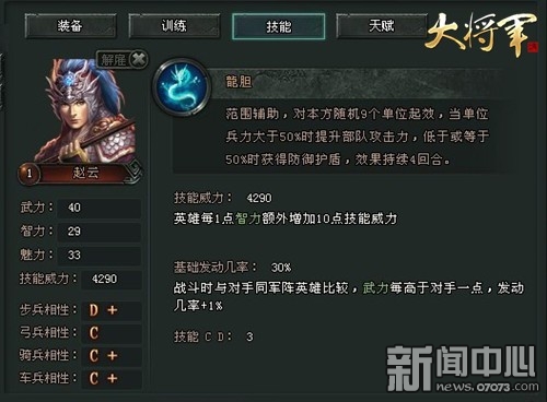 ¡¡¡¡3737¡¶´ó½«¾ü¡·Éñ½«ÕÔÔÆÄÇÎäÁ¦37¡¢ÖÇÁ¦26¡¢÷ÈÁ¦30µÄÈýΧ£¬¿ÉνÔÚÖÚÎ佫Öп°³ÆÍêÃÀ!¸üÓµÓÐÇ¿´óµÄ¼¼ÄÜ“Áúµ¨”£¬Äܹ»¶Ô¾ü¶ÓµÄ9¸öµ¥Î»Ôì³É·¶Î§¸¨ÖúЧ¹û¡£µ±µ¥Î»±øÁ¦´óÓÚ50%ʱ£¬ÌáÉý²¿¶Ó¹¥»÷Á¦;µ±µ¥Î»±øÁ¦µÍÓÚ»òµÈÓÚ50%ʱ»ñµÃ·ÀÓù»¤¶Ü£¬Ð§¹û³ÖÐø4»ØºÏ¡£Ç¿´óµÄ¼¼ÄÜÌØÐ§£¬Äܹ»Ìá¸ß¾ü¶ÓµÄ¹¥»÷Á¦£¬Í¬Ê±»¹Óб£»¤·ÀÓùЧ¹û£¬¿ÉÎ½ÃæÃæ¾ãµ½!