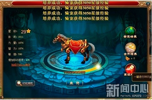 ¡¡¡¡2866¡¶¶·½«»ê¡·Íæ¼ÒÔÚ»ñµÃ×øÆïºó£¬ÒªÏë»ñµÃ¸ü¿ìµÄÒÆ¶¯ËÙ¶È¡¢¸ü¸ßµÄÊôÐԼӳɾͱØÐë¶Ô×øÆï½øÐÐÅàÑø£¬×øÆïÅàÑøÓÐÈýÖÖÐÎʽ£¬·Ö±ðÊÇÒø±ÒÅàÑø¡¢½ð±ÒÅàÑøºÍ¸ß¼¶ÅàÑø£¬ÎÞÂÛÄÄÖÖÅàÑø¶¼Äܹ»ÌáÉý×øÆïµÄÐÇÊý£¬ÆäÖи߼¶ÅàÑø¹¦ÄÜÔÚÍæ¼ÒVIP4ʱ¿ª·Å£¬Õâ¿ÉÊÇÏ൱¸øÁ¦µÄÒ»ÖÖ·½·¨£¬Ò»´ÎÐÔ½øÐÐÊ®´ÎµÄ½ð±ÒÅàÑø¼Èʡʱ¼äÓиøÁ¦!×øÆïÅàÑøµÄÉÏÏÞÐÇÊý=Íæ¼Òµ±Ç°µÈ¼¶Êý¡£