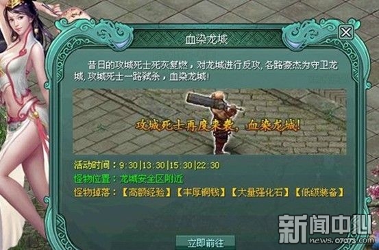 ¡¡¡¡ËùνµÄѪȾÁú³Ç£¬ÆäʵÊÇÎôÈÕ¹¥³ÇËÀÊ¿ËÀ»Ò¸´È¼£¬¶ÔÁú³Ç½øÐз´¹¥£¬¸÷·ÓÂÊ¿ÎªÊØÎÀÁú³Ç£¬Ç°ÍùÁú³ÇÓëËÀʿһ·ØËɱ……9£º30¡¢13£º30¡¢15£º30¡¢22£º00Ëĸöʱ¼ä¶Î£¬½«»áÃ÷È·Ö¤Ã÷£¬Æ½¾²Öаµ²ØÉ±»ú½«Óжà¿ÉÅÂ!