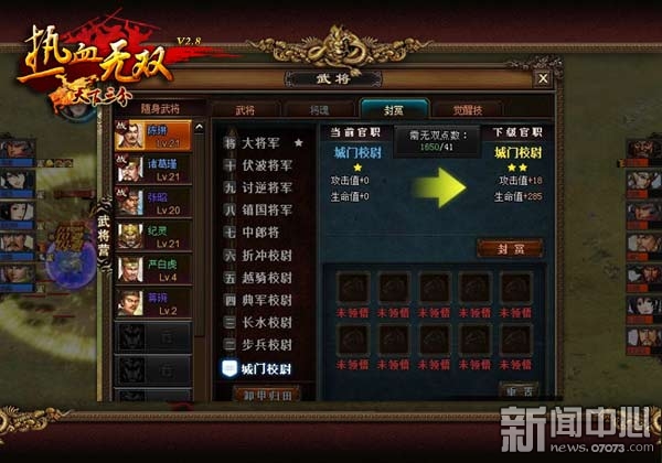 ¡¡¡¡Ð°汾ÖÐÎ佫·âÉͳýÁ˽çÃæÍâ¹ÛÉÏÓÐËù±ä»¯Ö®Í⣬·âÉÍ·½Ê½Ò²ÓÐËùµ÷Õû£¬ÓÉÔÏȵÄÕ÷ÕÙÁî»òÔª±¦½øÐÐÎ佫·âÉ͵÷ÕûΪʹÓÃÎÞË«µã»òÔª±¦½øÐÐÎ佫·âÉÍ£¬¸üÈËÐÔ»¯µÄÊÇ£¬ÐÂÔöÁ˓ж¼×¹éÌ¦ÄÜ£¬Ê¹Óøù¦Äܺó£¬Î佫·âÉ͵ĹÙÖ°½«±»ÖØÖã¬Í¬Ê±½«ÒÔÎÞË«µãµÄÐÎʽ¸ù¾ÝÒ»¶¨±ÈÀý½øÐзµ»¹¡£