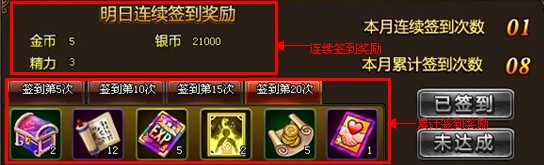 ¡¡¡¡Ê×ÏÈÀ´½éÉÜÏÂÁ¬ÐøÇ©µ½½±Àø£¬Á¬ÐøÇ©µ½½±ÀøËæ×ÅÍæ¼ÒÁ¬ÐøÇ©µ½µÄÌìÊýÔ½¶à£¬¶ø½±ÀøÔ½·á¸»£¬Èç¹ûÓÐÍæ¼ÒÄܱ£³ÖÒ»¸öÔÂÂúÇÚ£¬ÄÇÈ«ÇÚ½±¾ø¶ÔÊÇÒ»±Ê´ó²Æ¸»£¡·áºñµÃÈÃÄãЦ¿ª»³£¡È»¶øÒ»µ©¶ÏǩһÌ죬ÔòÓÖÒªÖØÍ·¿ªÊ¼¡£¶øÀÛ¼ÆÇ©µ½µÄ½±Æ·Ôò²»ÄÜÿÌìÁìÈ¡£¬¶øÊÇ·ÖΪ4¸ö½×¶Î£¬·Ö±ðΪ£º5´Î¡¢10´Î¡¢15´Î¡¢20´Î¡£½±Æ·ÄÚÈÝËæ×ÅÀۼƵĴÎÊýÔ½¶à¶øÔ½·á¸»£¬ÖмäÔÊÐíÍæ¼Ò¶ÏÇ©¡£¾ÙÀýÀ´Ëµ£º±ÈÈçÄãÁ¬Ðø¿¼ÇÚÁË4Ì죬¶øµÚ5ÌìûÓÐÉÏÏߣ¬µÚÁùÌìÉÏÏßµÄʱºò£¬ÄãµÄÁ¬Ðø¿¼ÇÚ½±ÀøÖ»ÄÜ´ÓµÚÒ»ÌìÖØÐ¿ªÊ¼£¬µ«ÊÇÀۼƿ¼ÇÚ½±Àø²»ÊÜÓ°Ï죬ͬÑù¿ÉÒÔÁìÇ©µ½5´ÎµÄÀñ°ü¡£