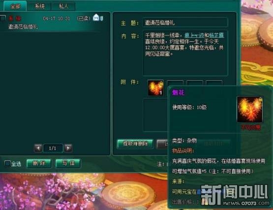 ¡¡¡¡ÊÕµ½Ï²ÌûµÄÍæ¼Ò»áÓÐÓʼþ֪ͨ£¬¸½´øÒ»¸öÔÚ»éÀñÏÖ³¡Ê¹ÓõÄÑÌ»¨£¬¿ÉÔö¼ÓÆø·ÕÖµ
