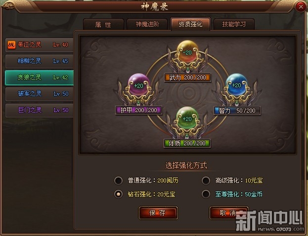 ¡¡¡¡2¡¢Á¦Á¿ÊôÐÔ¿ÉΪÉñħÌṩÎï¹¥¼Ó³ÉºÍÉÙÁ¿Îï·À£»ÖÇÁ¦ÊôÐÔ¿ÉÒÔΪÉñħÌṩ²ß¹¥¼Ó³ÉºÍÉÙÁ¿²ß·À£»»¤¼×ÊôÐÔ¿ÉÒÔΪÉñħÌṩÎï·ÀºÍ²ß·À¼Ó³É£»ÉúÃüÊôÐÔ¿ÉÒÔΪÉñħÌṩÉúÃüÖµ¼Ó³É¡£
