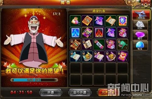 ¡¡¡¡ÔÚÍê³É35¼¶µÄÖ÷ÏßÈÎÎñÖ®ºó£¬ÎÒÃǾÍÄܹ»È¥´¥ÃþÕâ¼þÉñÆæµÄħºøÁË£¬Íæ¼Ò¿ÉÒÔÔÚÓÎÏ·ÉÏ·½µÄ»î¶¯½çÃæÉÏÕÒµ½“ħºø”ϵͳ£¬µã»÷Ëü£¬ÎÒÃÇÒ²¾ÍÓлú»áÐíÔ¸ÁË£¬¿´Ä§ºøÀï³öÀ´ÍÁ²ÆÖ÷ÃþÑù¸»µÃÁ÷Ó͵ĴóÉñ£¨ÕâÓÐËùµß¸²ÎÒµÄÏëÏ󣩣¬¾ø¶ÔÄܹ»Ïëµ½ËûµÄ¿Ú´üÀﱦ±´²»»áÉٵġ£¿´¿´£¬³ýÁËÇ®´ü¾Ñ鿨֮Í⣬¸üÓнð±Ò¿¨£¬¼«Æ·²ÄÁÏ£¬Ä§Ê¯ºÍÃܱ£¿ÉÒÔÄã¬ÔÚÓÎÏ·ÖÐÕâôÁîÈË´¹ÏѵÄÀñÆ·£¬Äѹִó¼Ò¶¼ÒªÇÀ×ÅÐíÔ¸ÁË¡£