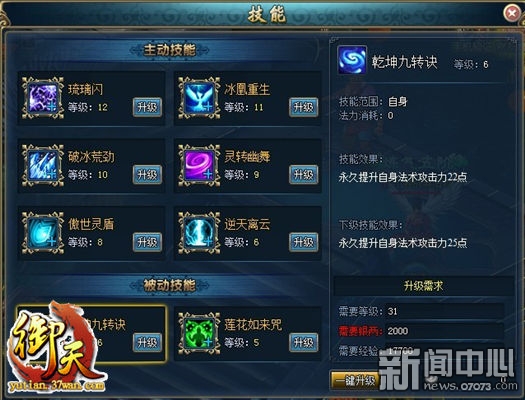 ¡¡¡¡Ö÷¶¯¼¼ÄÜÊÇ37wan¡¶ÓùÌì¡··¨ÁéÖ°Òµ¹¥»÷Êä³öµÄ×îÖ÷ÒªÊֶΡ£6¸öÖ÷¶¯¼¼ÄÜ·Ö±ðÊÇÁðÁ§ÉÁ¡¢±ù·ïÖØÉú¡¢ÆÆ±ù»Ä¾¢¡¢ÁéתÓÄÎè¡¢°ÁÊÀÁé¶Ü¡¢ÄæÌìÀëÔÆ¡£Ã¿¸ö¼¼Äܶ¼ÄÜͨ¹ýÉý¼¶À´ÔöÇ¿ÍþÁ¦£¬¼¼ÄÜÉý¼¶ÐèÒªÏûºÄÒ»¶¨µÄÒøÁ½Óë¾Ñ飬¼¼ÄܵÄÿ´ÎÉý¼¶£¬¶¼ÄÜÔö¼Ó0.5%µÄÉ˺¦»ò0.3%µÄ·ÀÓù¡£