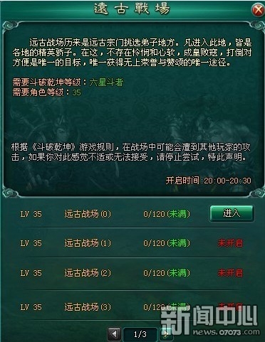 ¡¡¡¡1. µ¯´°½øÈ룬ս³¡¿ªÊ¼ÔÚÆÁÄ»ÖÐÑëΪµÈ¼¶´óÓÚ35µÄÔÚÏßÍæ¼Òµ¯³öÌáʾ½øÈëµÄ°´Å¥¡£