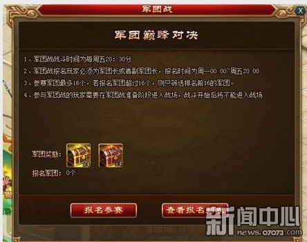 ¡¡¡¡²ÎÓëÌõ¼þ£º ¾üÍŵȼ¶´ïµ½3¼¶µÄ¾üÍų¤ºÍ¸±¾üÍų¤¿ÉÒÔ±¨ÃûÿÖܾüÍÅÕ½