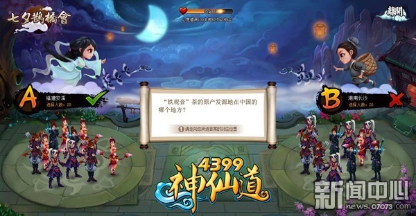 ¡¡¡¡2.»î¶¯Ê±¼äÄÚÍæ¼Òµã»÷»î¶¯Í¼±ê½øÈëÆßϦ³¡¾°£¬Í¨¹ý´ðÌâ»ñµÃÐÄÒâÖµ£¬ÐÄÒâÖµÂú100¿ÉʹţÀÉ֯ŮÏà»á¡£