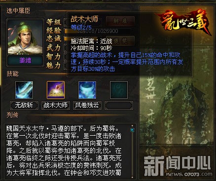 ¡¡¡¡½ªÎ¬²»ÖªµÀ¸Ã˵ËûÊÇÐÒÔË»¹ÊDZ¯°§£¬ÔÚÈý¹úÖУ¬ËûËãÊÇÄêÇáµÃÖ¾£¬±»Öî¸ðÁÁʶµÃÊÇһƥǧÀïÂí£¬ºÜÔç¾Íµ£ÈÎÁËÕ÷Î÷½«¾üÒ»Ö°¡£µ«µ½Á˷ѵtʱ´ú£¬½ªÎ¬ÇëÇóÈ¥ÌÖ·¥Îº¹ú£¬µ«·Ñµtȴ˵ÔÛÃÇ±ÈØ©Ïà²îÔ¶ÁË£¬Ø©ÏàûÓаì³ÉµÄʶù£¬ÔÛÄܰì³É£¿Ö±µ½·ÑËÀÖ®ºó£¬½ªÎ¬²ÅËãÕæÕýµÄ³öÍ·£¬µ«×îºóÒ²»¹ÊÇ´óÖ¾²»µÃ±¨¡£¡¶ÂÒÊÀÈýÒå¡·ÖеĽªÎ¬¿ÉÒÔ˵ÊÇÒ»ÖØ³¼£¬ËûµÄ¾ø¼¼ÎÞµÐÕ¶ºÍÕ½Êõ´óʦÈÃÄãÔÚÁì±ø×÷սʱºòÄÜ·¢»Ó³öÒì³£ÌØÊâµÄЧ¹û¡£