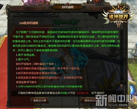 ¡¡¡¡²»Í¬ÓÚÄÇЩһζֻ׷ÇóµÈ¼¶Ò³ÓΣ¬¡¶ÖîÉñÊÀ½ç¡·Îª±£ÕÏÍæ¼ÒÀûÒæ£¬¶ÔÓÚÉý¼¶½Ï¿ìµÄÍæ¼Ò½øÐеȼ¶·âÓ¡¡£Í¬Ê±ÏµÍ³»á¿ªÆô·âÓ¡¼Ó³É£¬µÈ¼¶ÂäºóµÄÍæ¼Ò½«»á»ñµÃ¸ü¶à¾Ñ飬¸ü¿ìµÄ½«ÂäºóµÄµÈ¼¶¸ÏÉÏÀ´¡£´Ó60¼¶¿ªÊ¼£¬ÏµÍ³±ã»á×Ô¶¯¿ªÆô·âÓ¡¹¦ÄÜ¡£