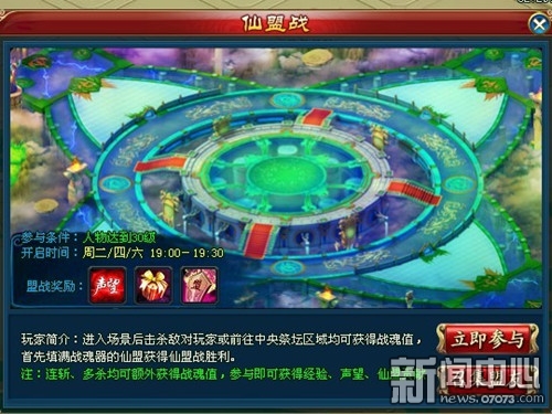 ¡¡¡¡Ã¿Öܶþ¡¢ÖÜËÄ¡¢ÖÜÁùµÄÍíÉÏ19£º00——19£º30£¬ÏÉÃËÖ®¼ä»áÓÐÒ»´ÎÏÉÃËÕ½£¬²Î¼ÓÃËÕ½ÎÞÂÛʤ¸º¾ù¿É»ñµÃ´óÁ¿µÄÉùÍû¡¢×ÊÔ´ºÍ¹±Ïס£»ñµÃʤÀûµÄÏÉÃ˳ÉÔ±»¹ÓжîÍâ½±Àø¡£
