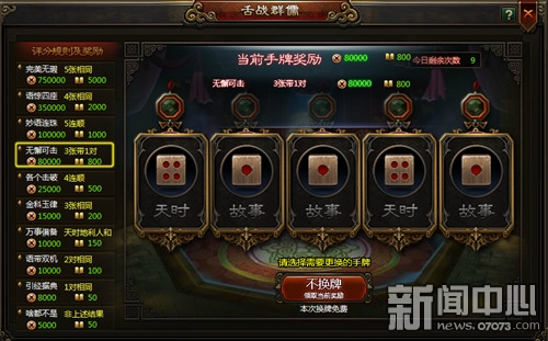 ¡¡¡¡ÉàսȺÈåÊÇ3737¡¶Éñ½«Èý¹ú¡·ÖÐÒ»¸öÀàËÆÓÚµÂÖÝÆË¿ËÍæ·¨£¬Íæ¼ÒÔÚͨ¹ý·ïÒÇɽׯ5ºó¼´¿É¿ªÆô´ËÍæ·¨£¬Íæ¼ÒÿÌìÖ»ÓÐ10´ÎµÄÌôÕ½»ú»á£¬ÇÒÿ´ÎÍæ¼Ò½«»áËæ»ú»ñµÃ5ÕÅÆË¿ËÅÆ£¬ÏµÍ³»á¸ù¾ÝÅÆµÄ×éºÏÀ´¾ö¶¨½±Àø£¬µ±È»Íæ¼ÒÒ²Óл»ÅƵĻú»á£¬µ«Ö»ÓÐÁ½´ÎµÄÃâ·Ñ»»ÅƵĻú»á£¬ÈôÒªÔÙ»»ÅÆÔòÐèÒªÓÃÔª±¦¹ºÂò£¬Òò´ËÍæ¼ÒÔÚÌôÕ½ÉàսȺÈåʱһ¶¨ÒªÈý˼¶øºóÐÐŶ¡£