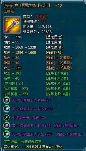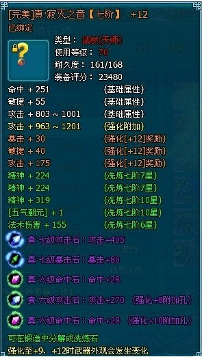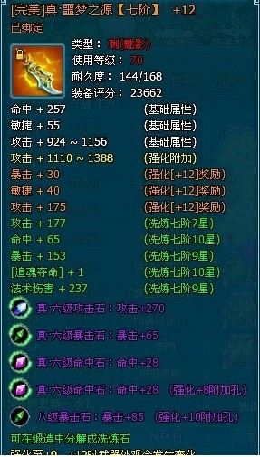 ¡¡¡¡Õæ·¼ÅÃðÖ®Òô¡£Æß½×£¬ÍêÃÀÆ·ÖÊ£¬Ç¿»¯+12¡£Õâ¿îÎäÆ÷Ç¿»¯£¬Æ·ÖʵȻù´¡¼Ó¹¤¶¼ÓëÉÏÃæÁ½¸ö²¿¼þÒ»Ñù£¬ÔÚÏ´Á·Æ·ÖÊÉϲî±ð½Ï´ó¡£ÓÐÁ½ÏîÊÇÂúÊôÐÔÏ´Á·£¬Á½Ïî7ÐÇ£¬»¹ÓÐÒ»Ïî6ÐǼ¶ÊôÐÔ¡£±¦Ê¯ÏâǶ·½Ã棬Õâ¿îÌìʦÎäÆ÷¶¼ÊÇÕæÆ·±¦Ê¯£¬Èý¸ö6¼¶£¬Á½¸ö7¼¶¡£